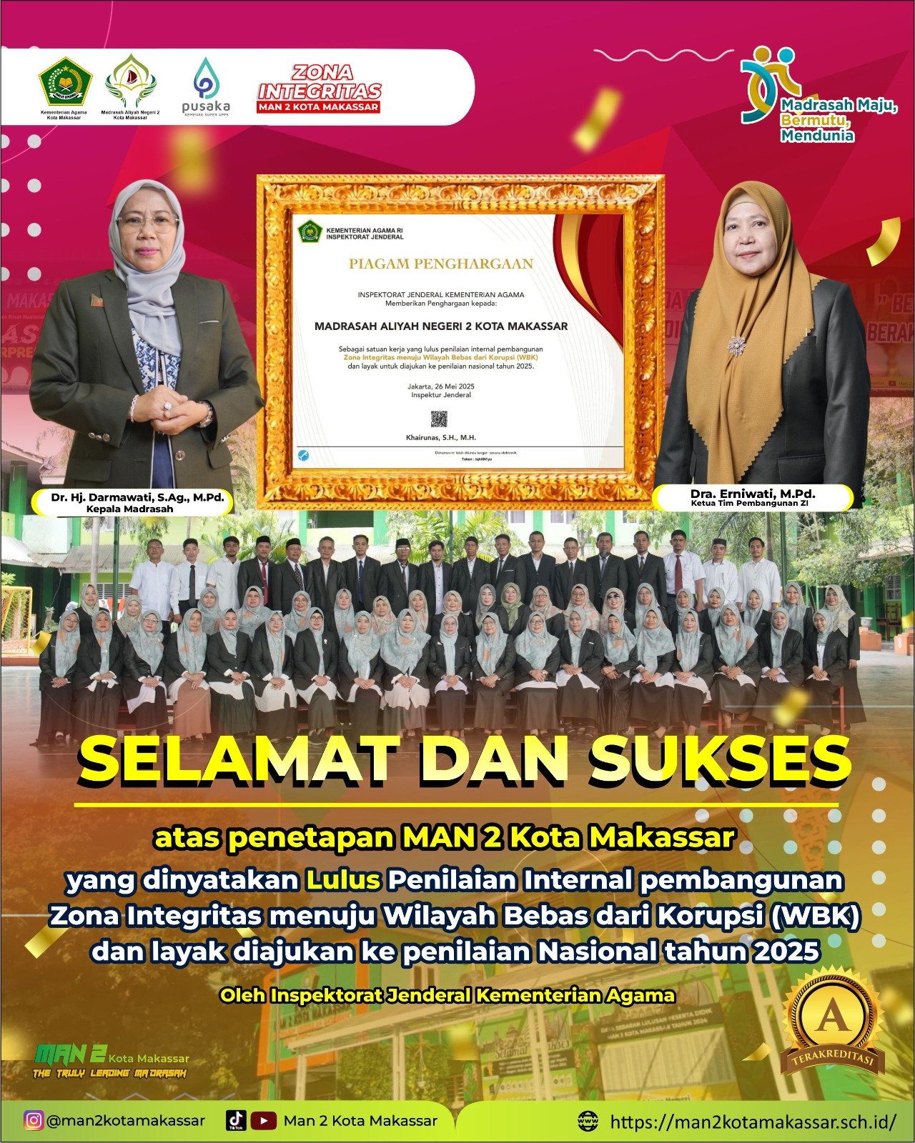 MAN 2 Kota Makassar Raih Penghargaan Bergengsi Atas Dedikasi dalam Pembangunan ZI Menuju WBK/WBBM