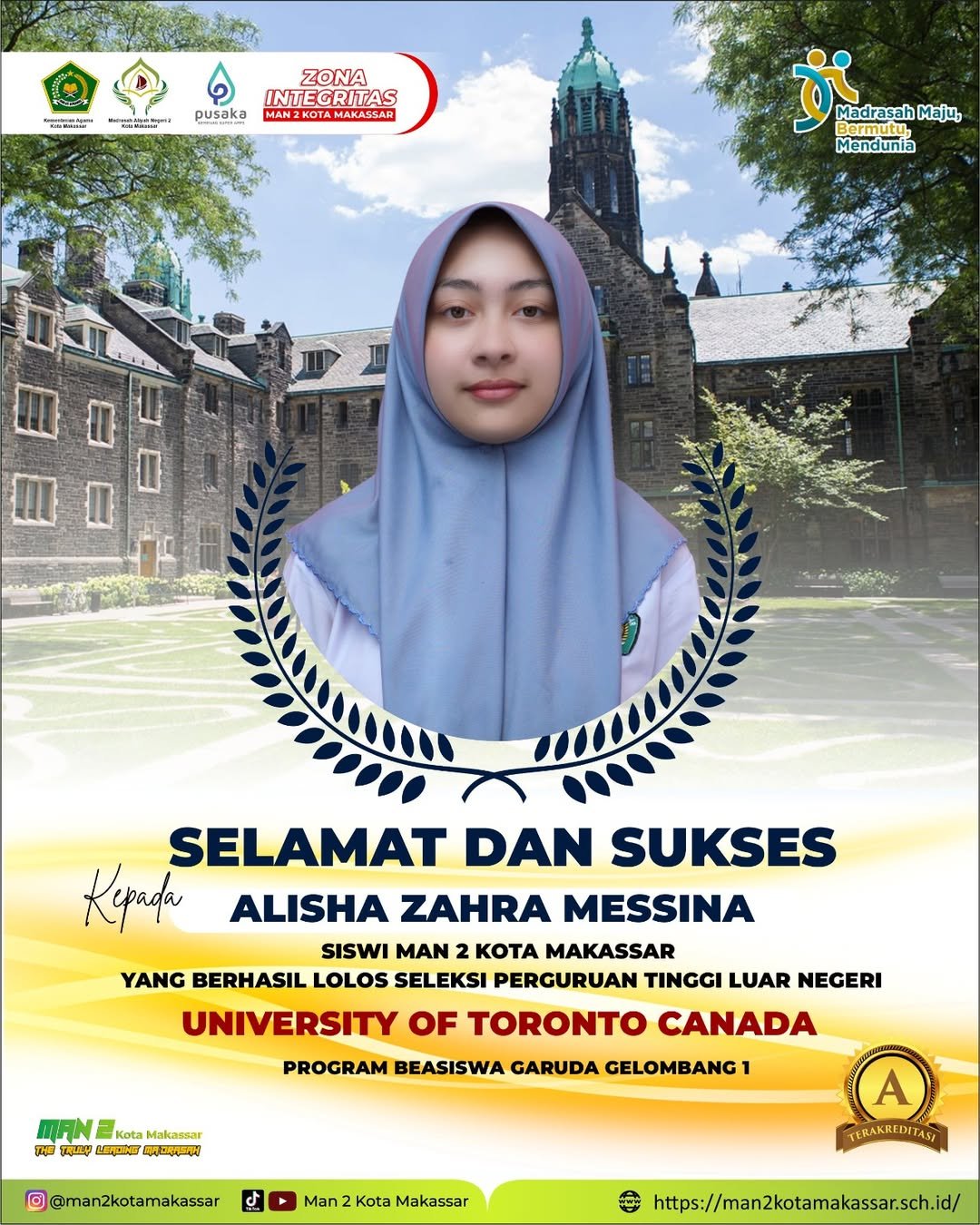 Siswa MAN 2 Kota Makassar Lolos Beasiswa Kuliah di University of Toronto, Kanada