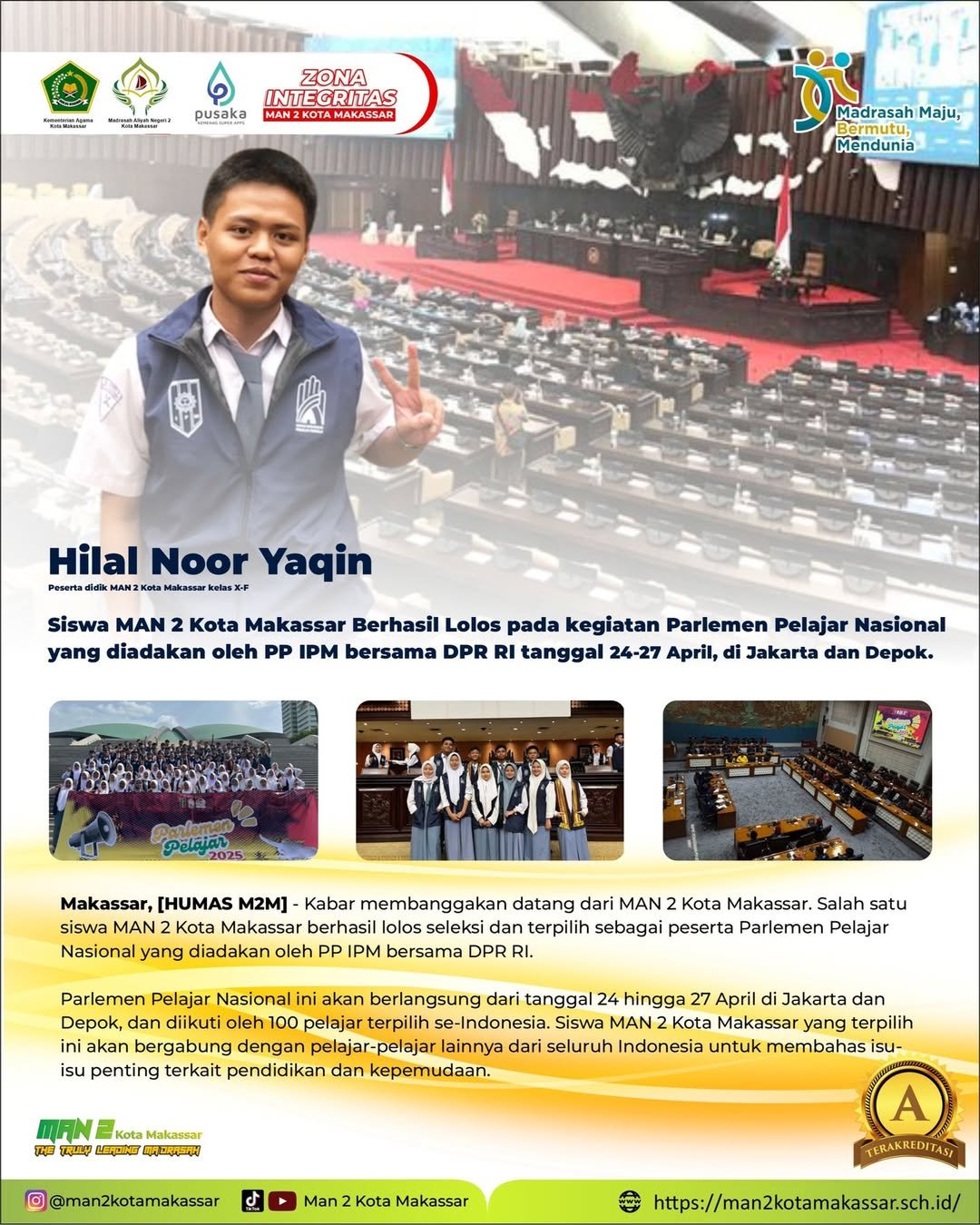 Siswa MAN 2 Kota Makassar Lolos Seleksi Parlemen Remaja 2025