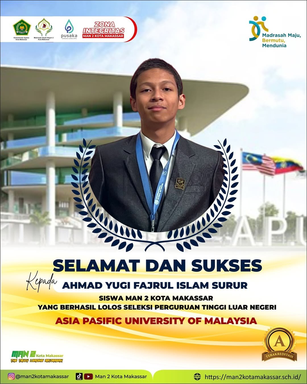 Siswa MAN 2 Kota Makassar Lolos Beasiswa S1 di APU Malaysia